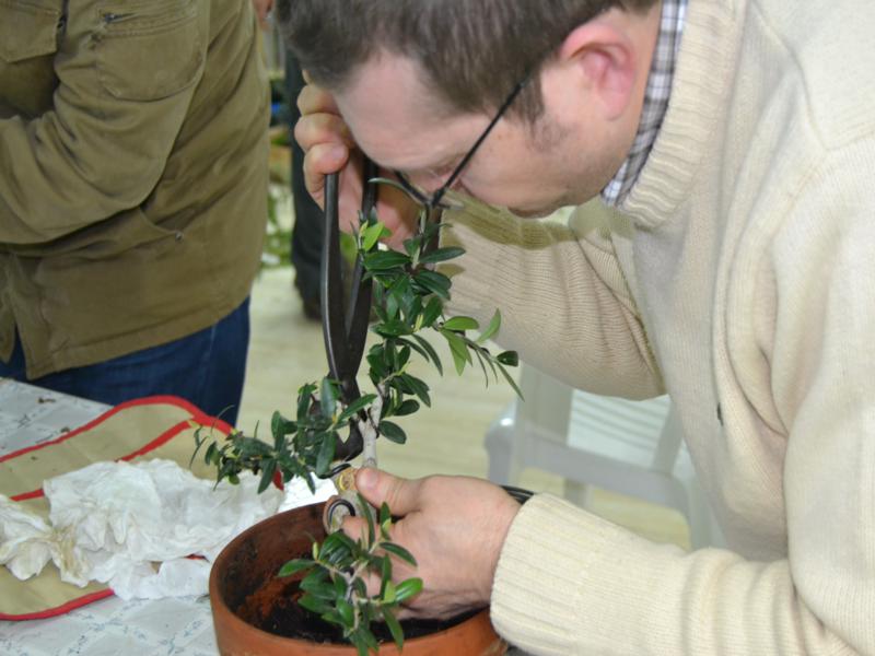 Nacho comenzó dándonos una amena introducción sobre aspectos generales del bonsái, técnicas y objetivos de éstas, para luego dar paso al trabajo sobre los árboles.