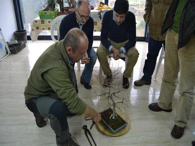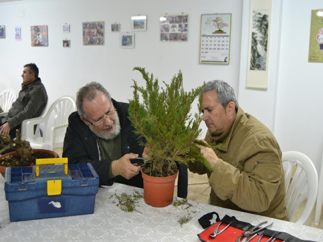 Discusión en grupo, ¡¡¡qué forma más enriquecedora de aprender!!! Cada uno iba aportando su visión, su ideal de bonsái, su propuesta y finalmente, el dueño era quien tomaba la decisión importante.