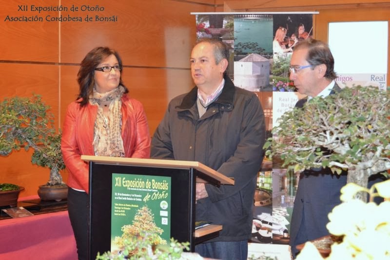 La inauguración oficial de la misma tuvo lugar el viernes por la mañana, a la que asistieron D. Rafael Jaen, Delegado de Patrimonio, Casco Histórico y Naturaleza, D. Juan Ramírez, presidente de la Sociedad de Amigos del Botánico y Dña. Mª Isabel Martínez, presidenta de la Asociación Cordobesa de Bonsái.