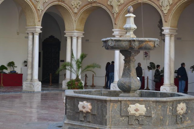 Aunque en esta ocasión la climatología no quiso acompañar demasiado, esto no ensombreció en absoluto la esplendorosa imagen del Patio Barroco del Palacio de la Merced, adornado con los árboles y acentos engalanados para la ocasión.